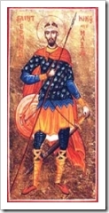 St Edmund was gruesomely murdered by the rampaging Vikings who tied him to a tree, shot arrows at him, then beheaded him. He was enshrined at Bury St Edmunds.